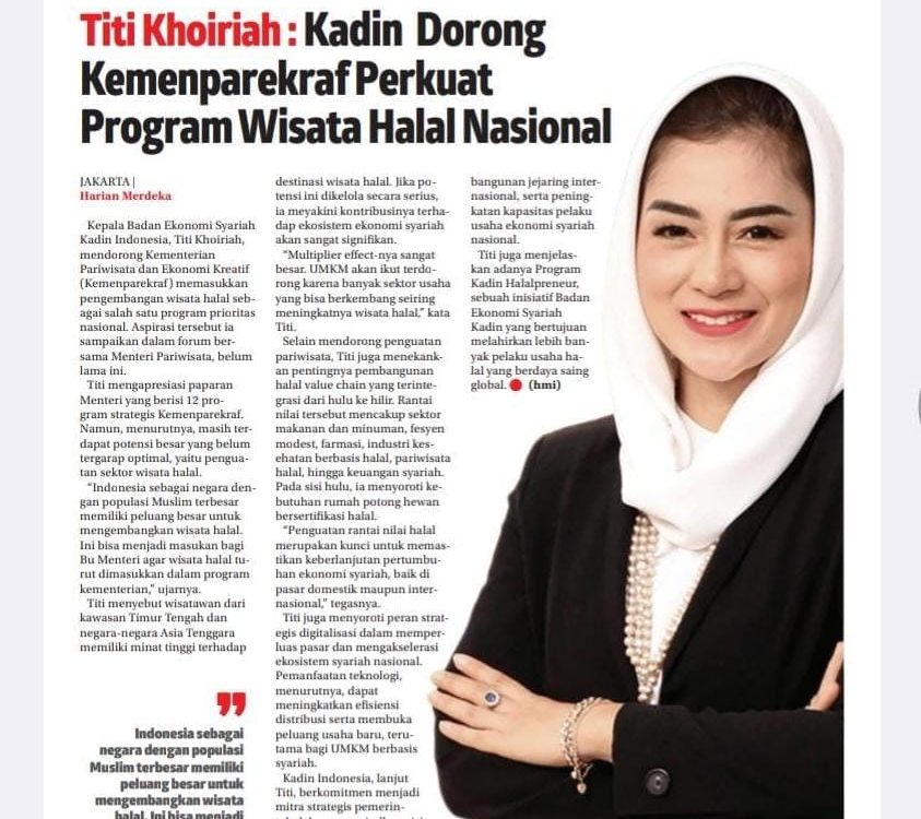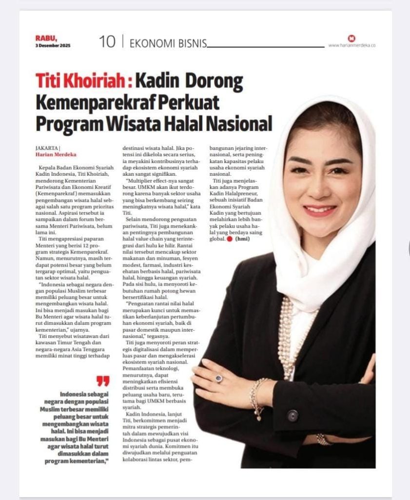 Kepala Badan Ekonomi Syariah Kadin Indonesia, Titi Khoiriah, mendorong Kementerian Pariwisata dan Ekonomi Kreatif(Kemenparekraf ) memasukkan pengembangan wisata halal sebagai salah satu program prioritas nasional. Aspirasi […]